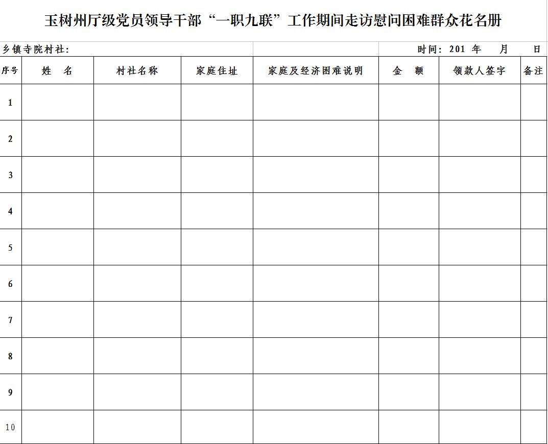 • 玉树州厅级党员领导干部“一职九联”工作期间走访慰问困难群众花名册