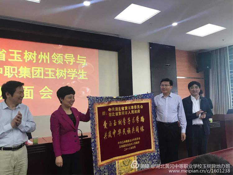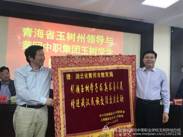 向黄冈市教育局敬献了"引领玉树学子求真求善求美、增进藏汉民族交往交流交融"锦旗